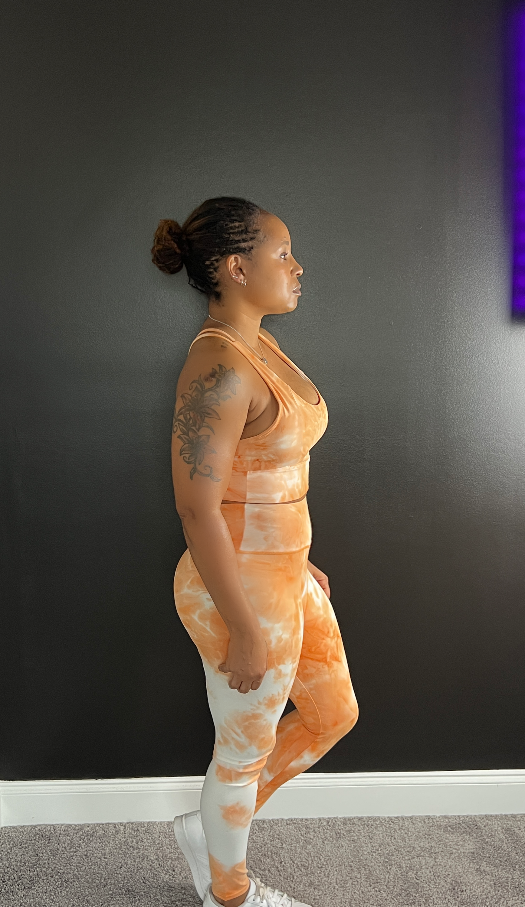 The strappy sports bra adds a stylish touch without sacrificing comfort perfect for movement, stretching, or simply feeling good in your body.